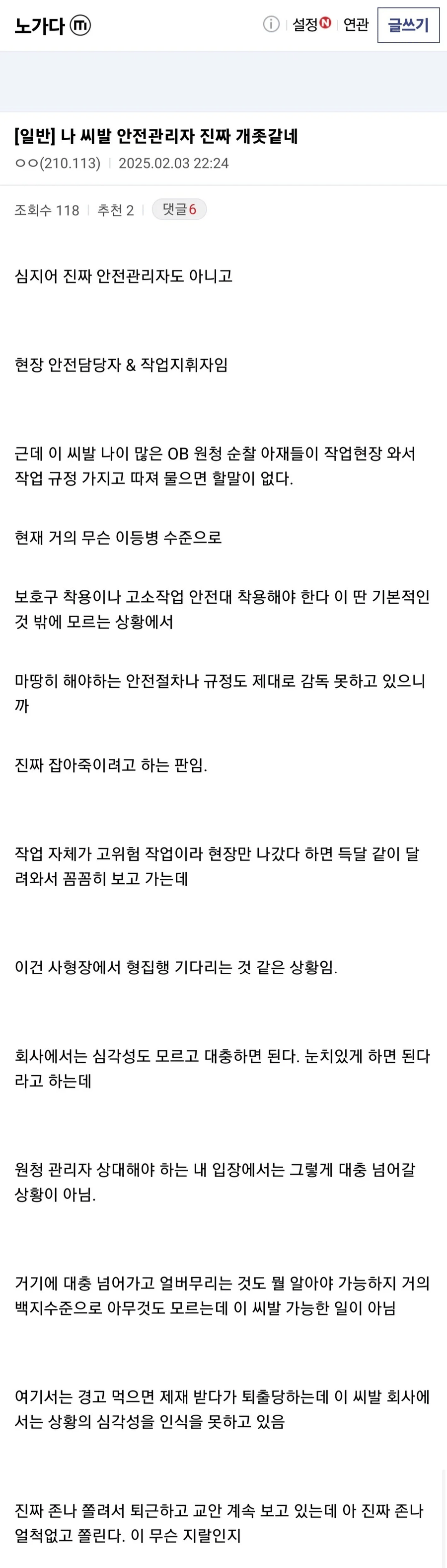 건설현장 안전관리자 하지말라는 노가다 갤러