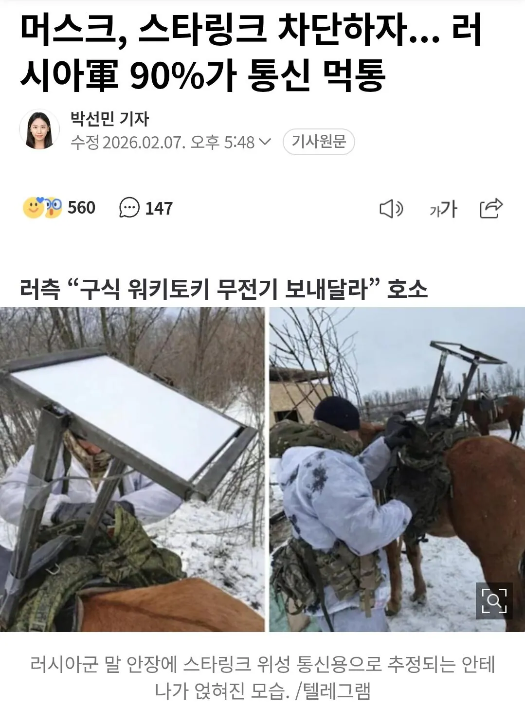 3. 대 러시아 스타링크 차단 후 러시아군 90% 통신 불가 상태