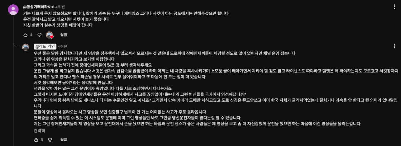 고속도로에서 230km로 시원하게 달리는 유튜버 댓글