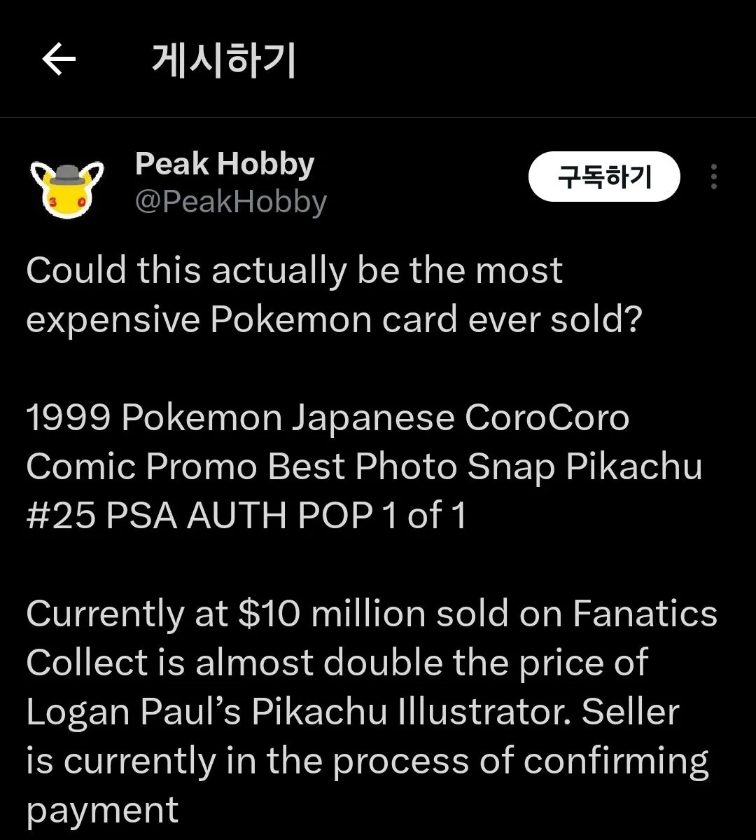 가장 비싼 포켓몬스터 카드 가격 갱신 예정