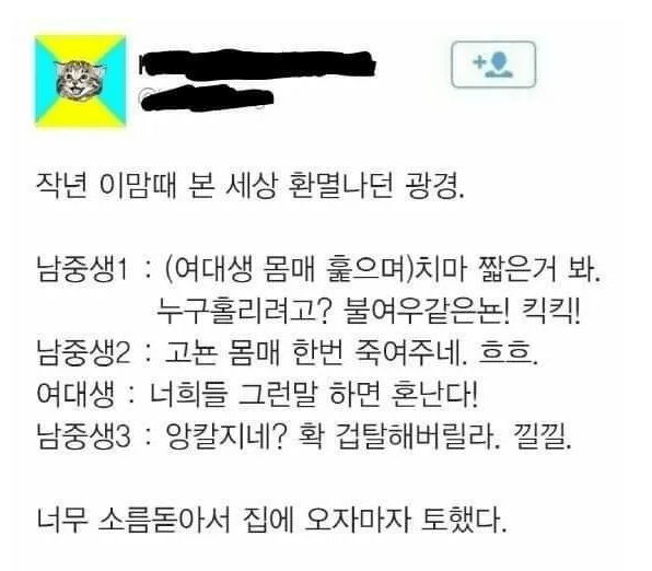 과거 트위터 아줌마가 말하는 남중생의 성희롱 수준