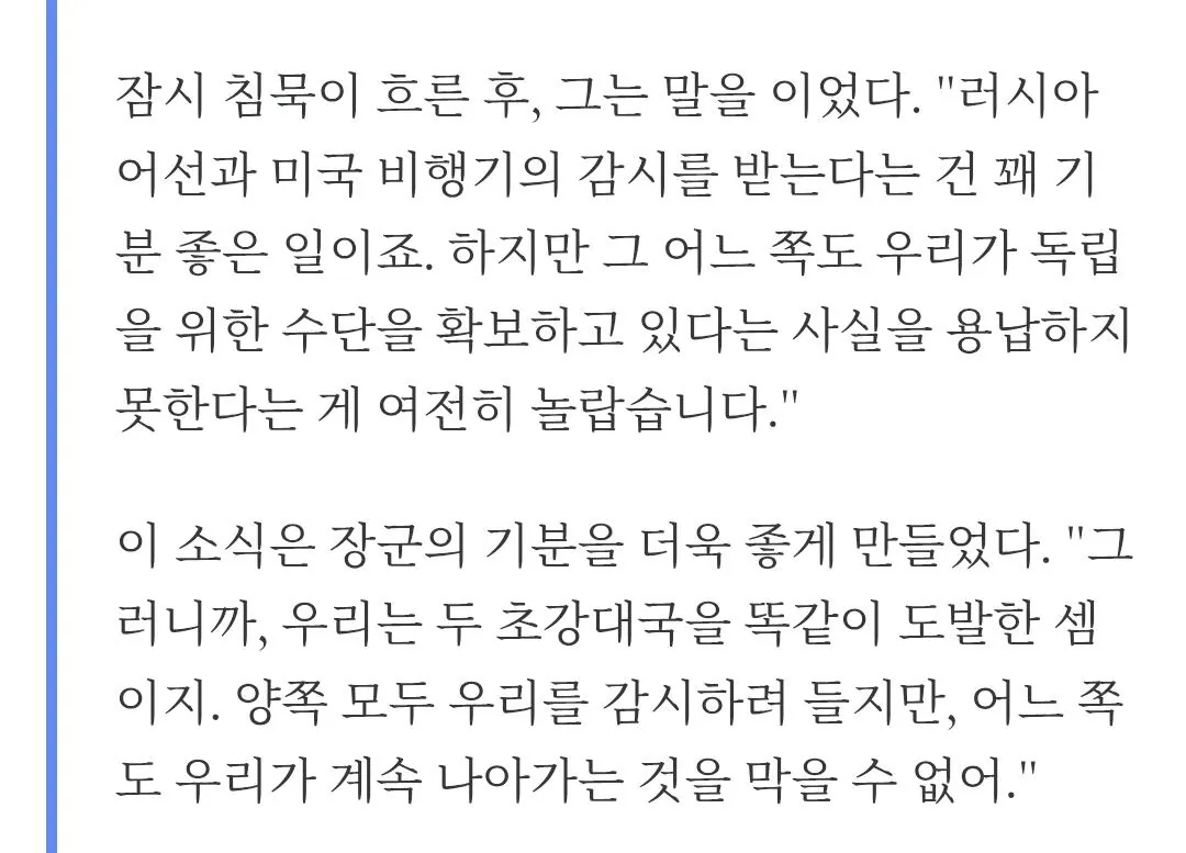 "ㅋㅋ 미국 소련이 우릴 둘 다 견제하네 존나 기분 좋다."