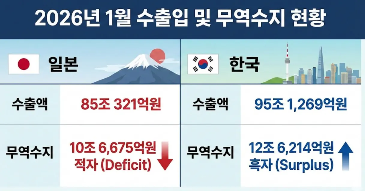 한국 VS 일본 1월 수출액 비교