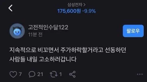 주가하락 조롱죄로 고소당한다 ㄷㄷ