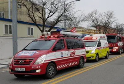 신고를 받은 소방차와 구급차가