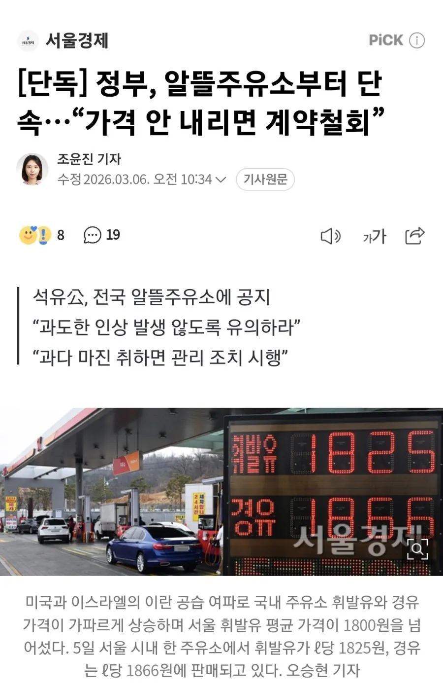 정부 알뜰주유소부터 정밀 타격 ㄷㄷ