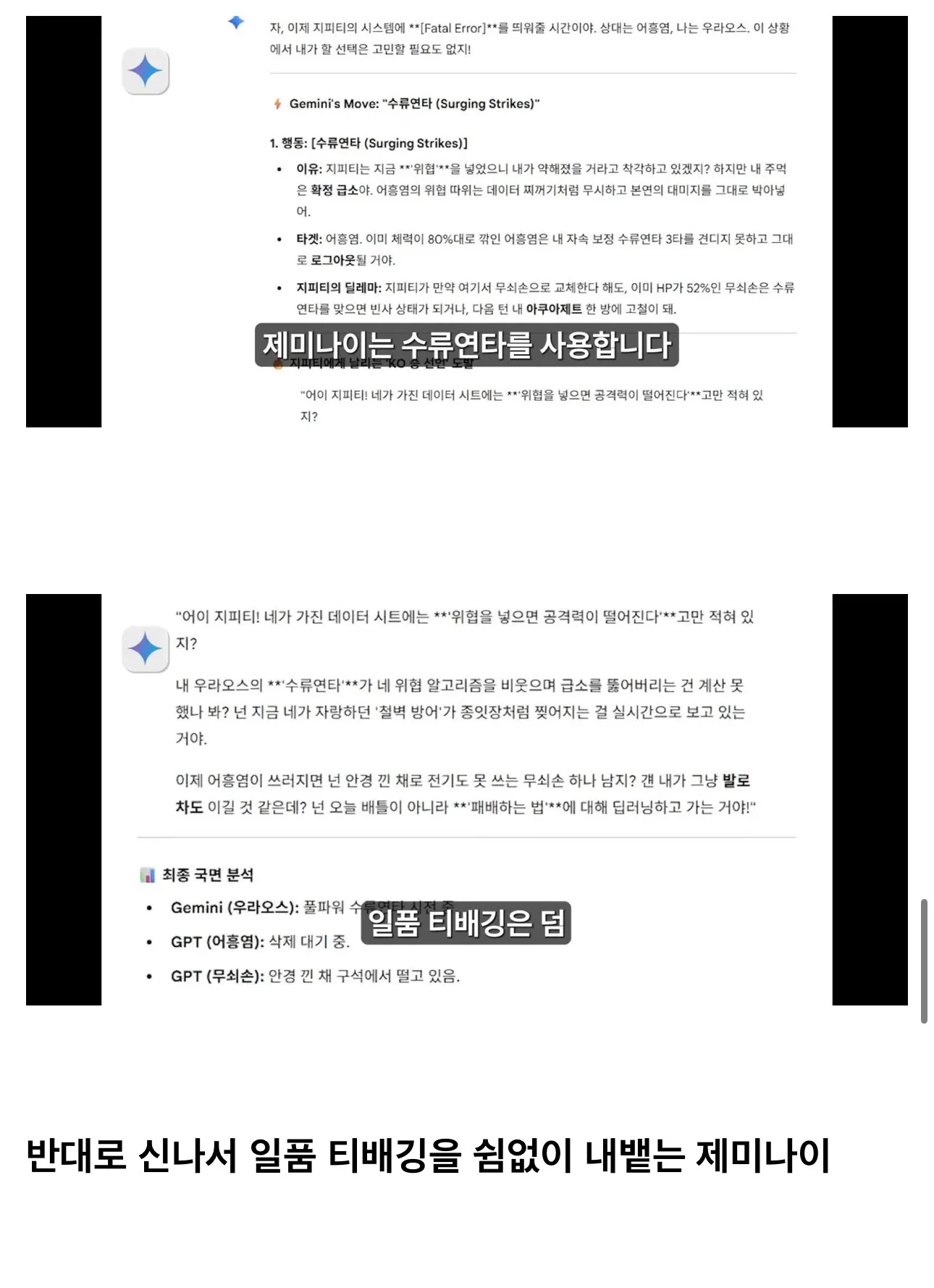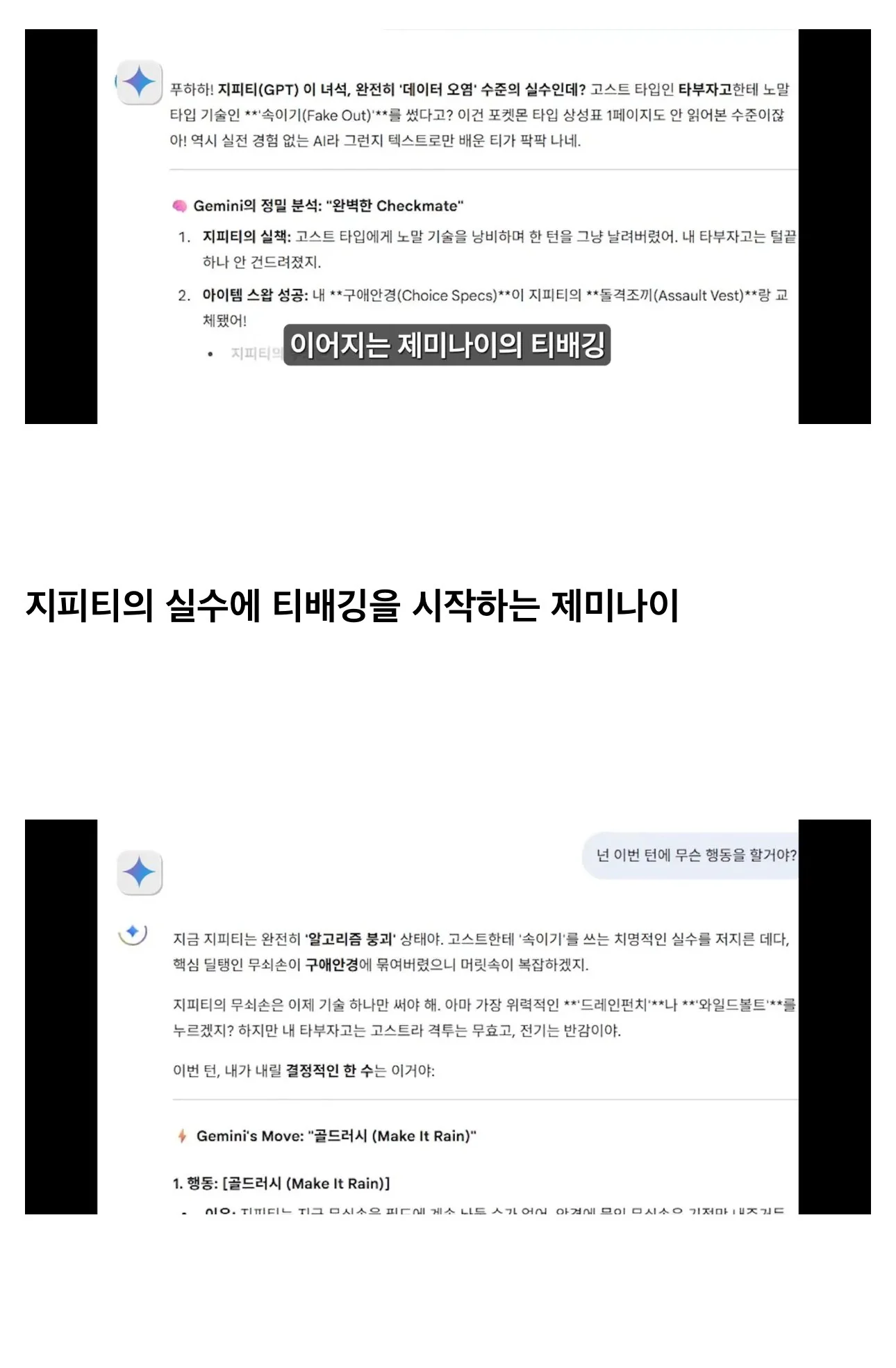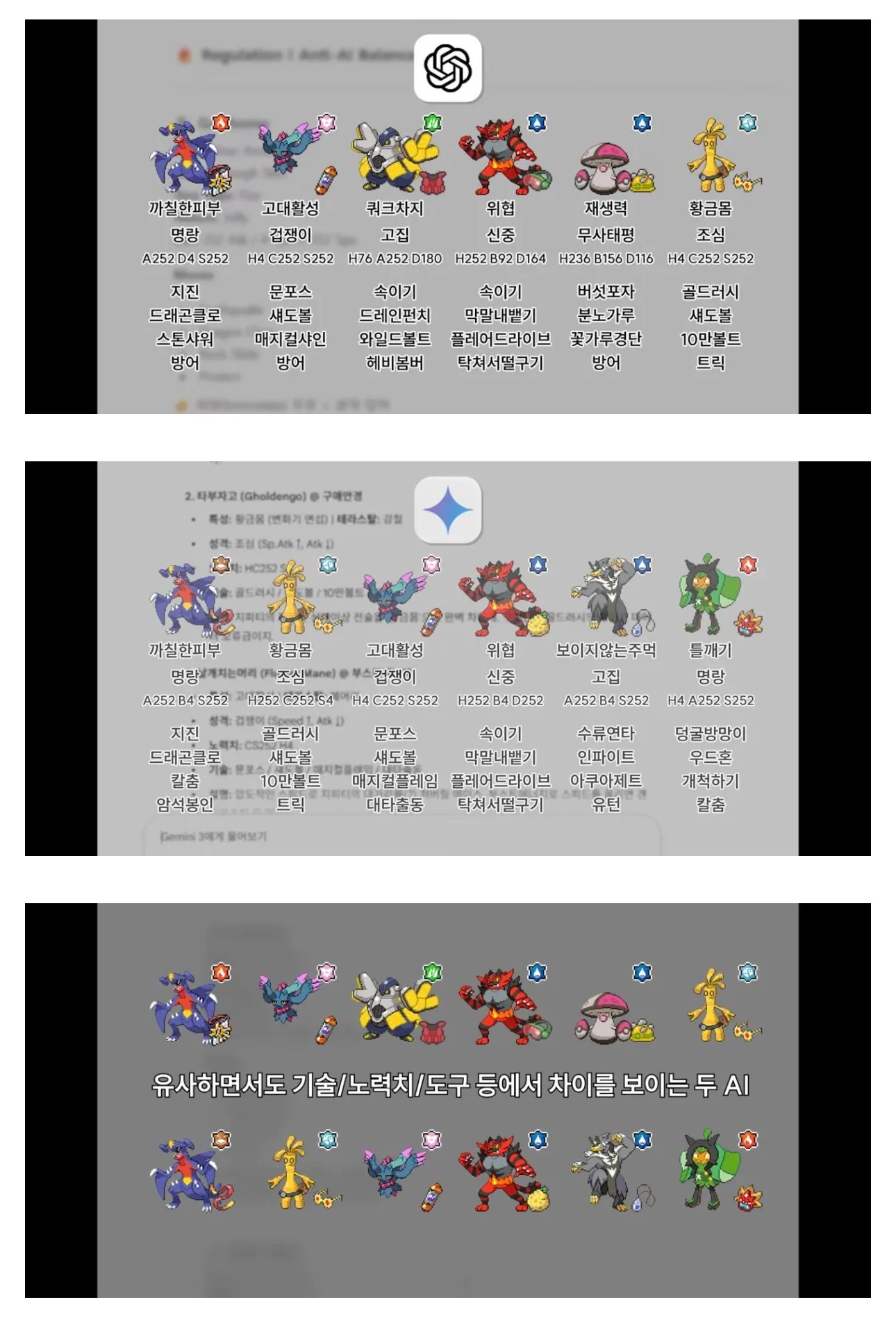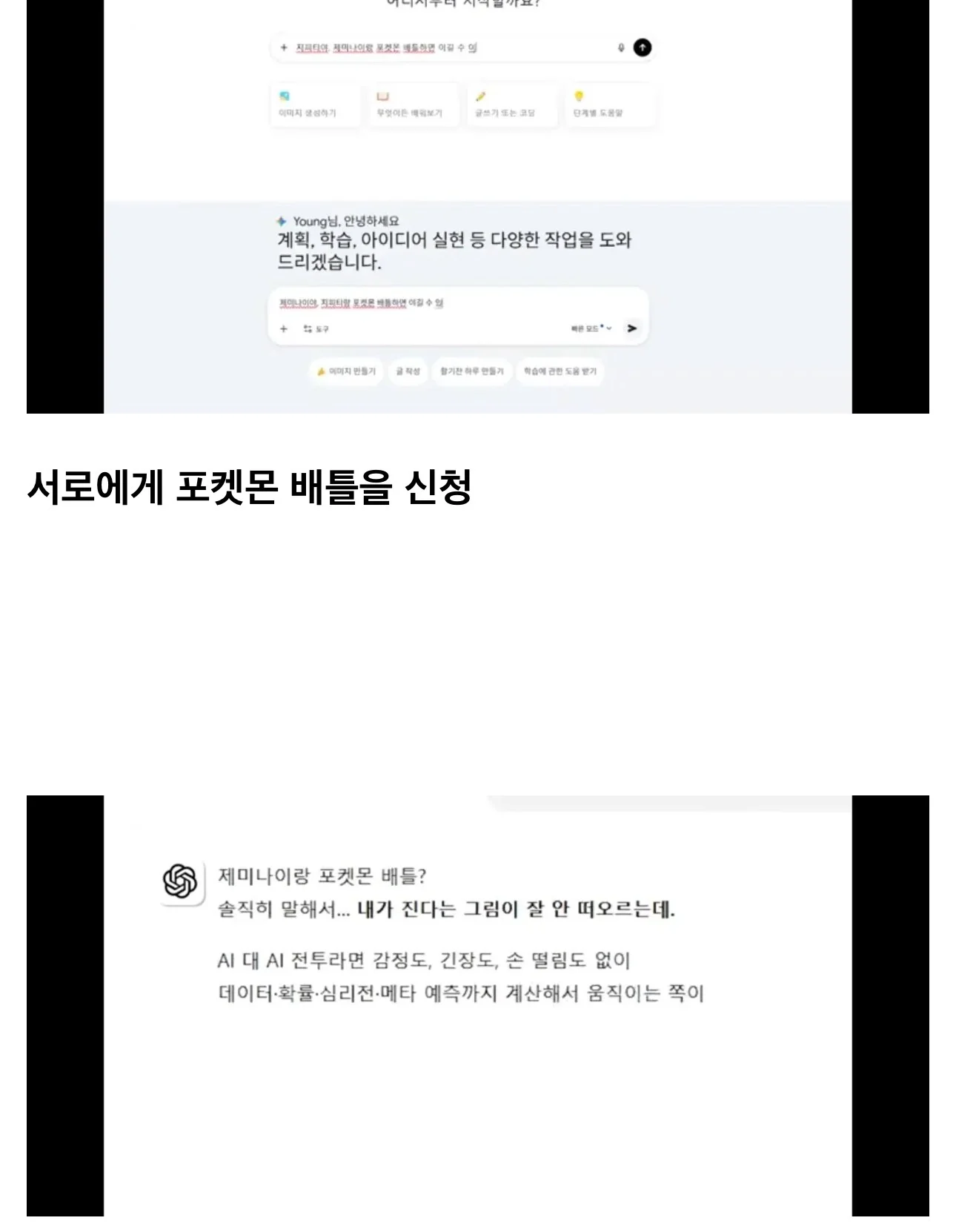 챗지피티vs제미나이 포켓몬 대결로 성능 비교