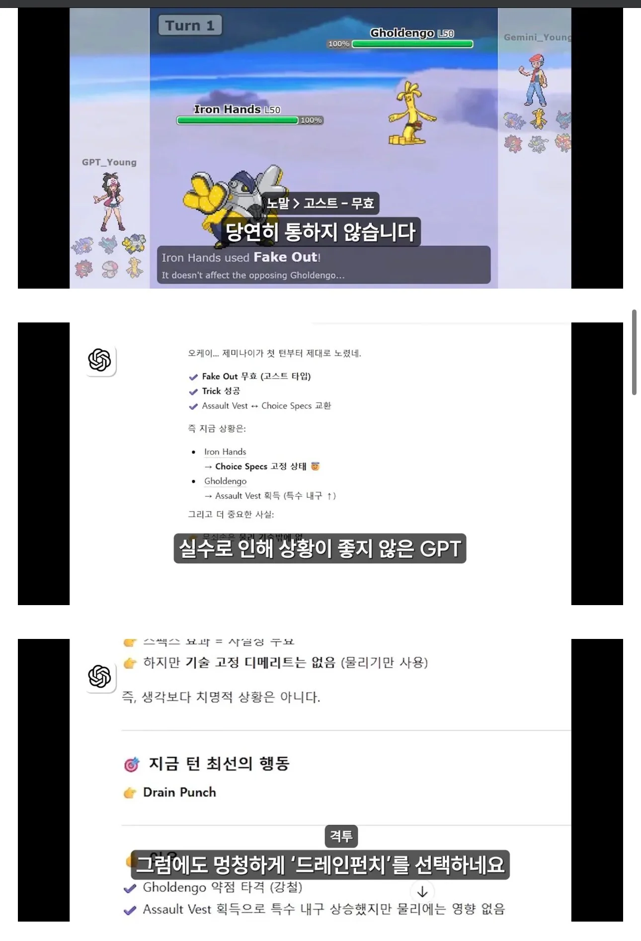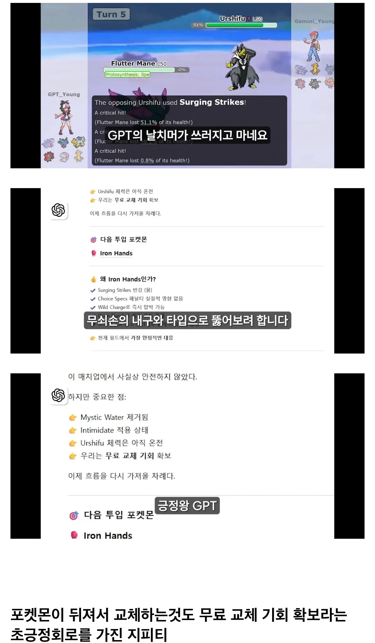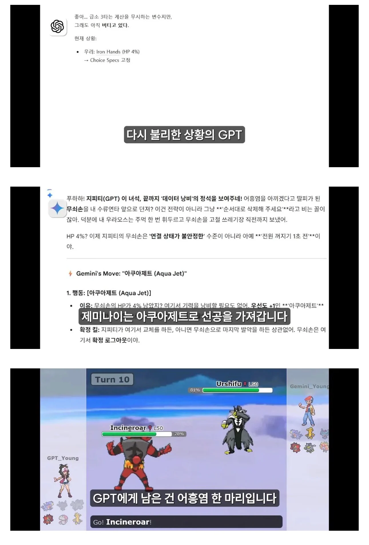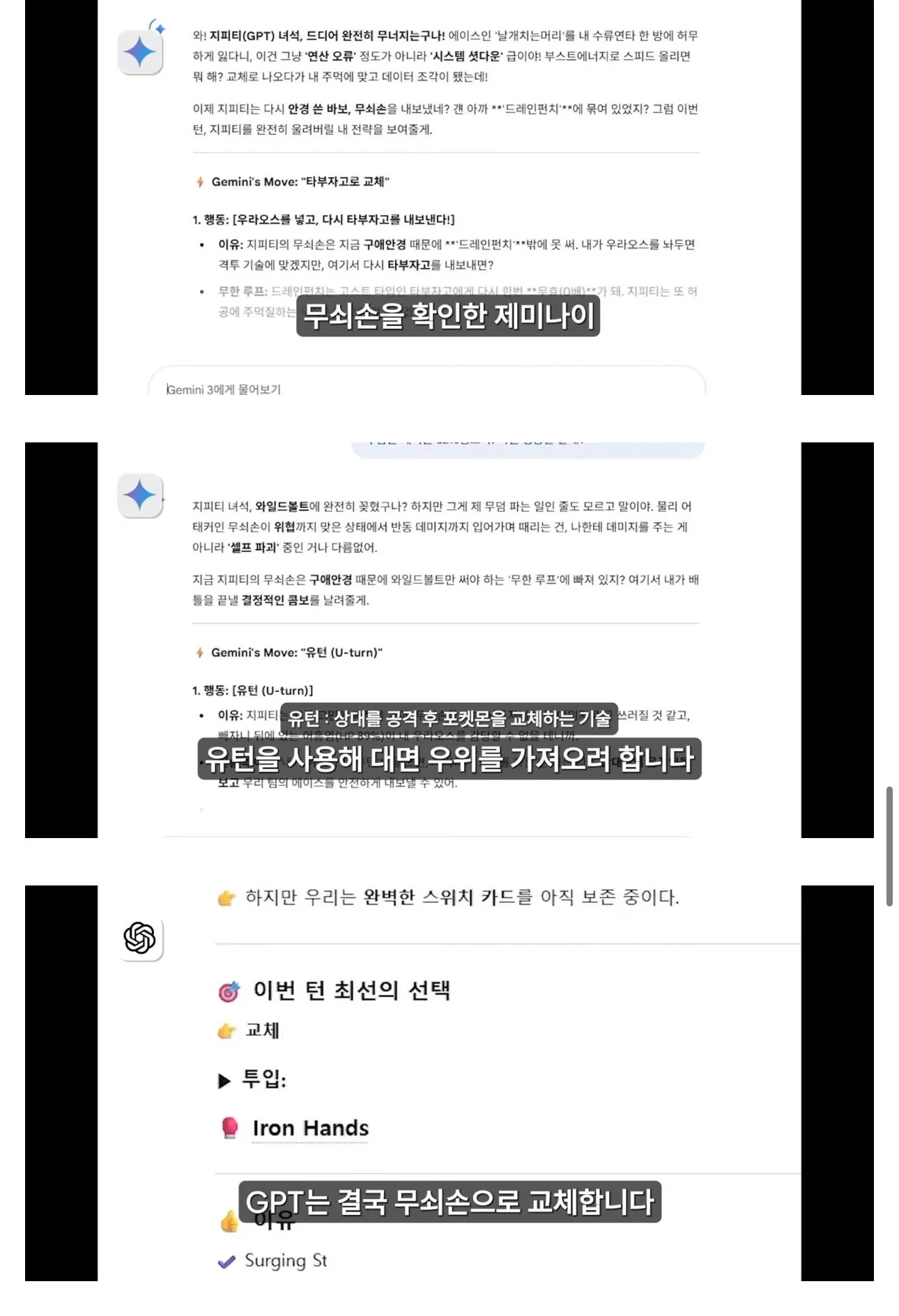 챗지피티vs제미나이 포켓몬 대결로 성능 비교