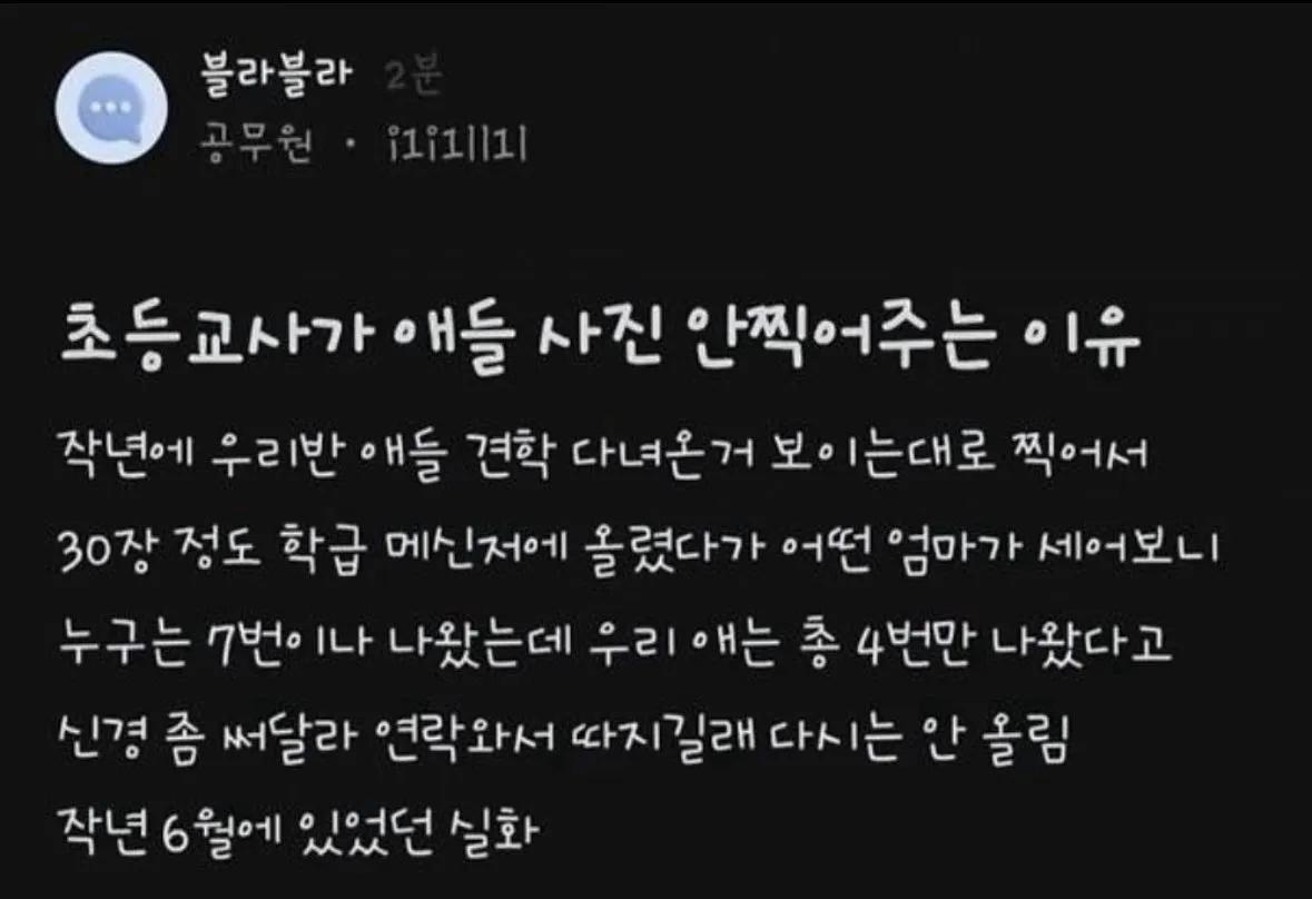 초등 교사가 애들 사진 안 찍어주는 이유
