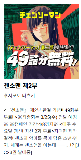 오피셜) 체인소맨 원작 만화 3/25 완결 예정