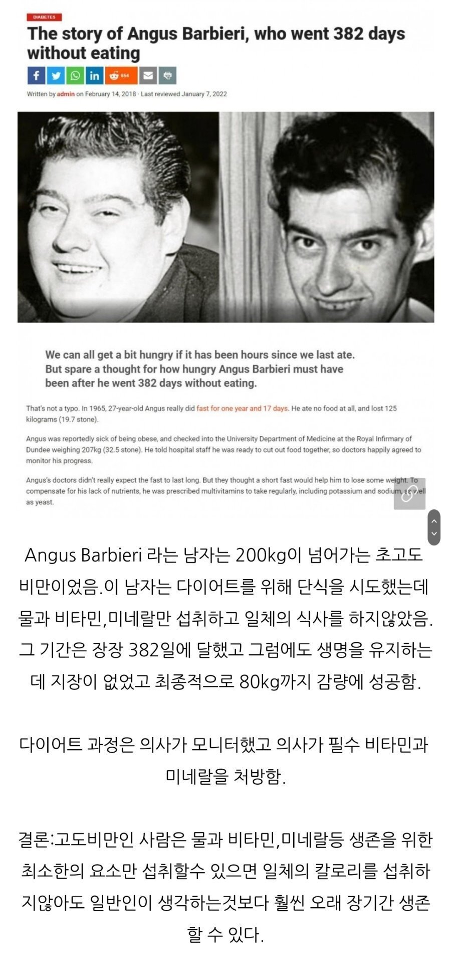 초고도비만인 사람이 음식을 먹지 않고 버틸 수 있는 기간