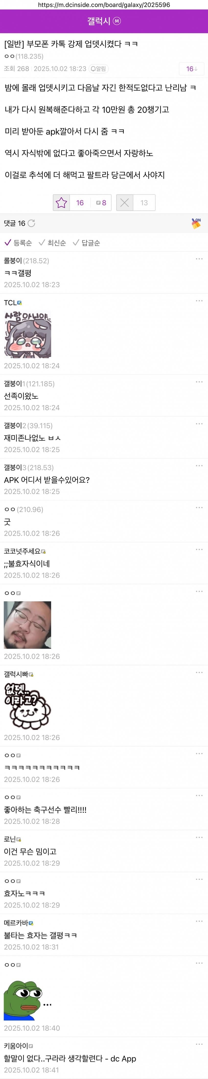 부모폰 카톡 강제 업데이트 시켰다 ㅋㅋㅋ