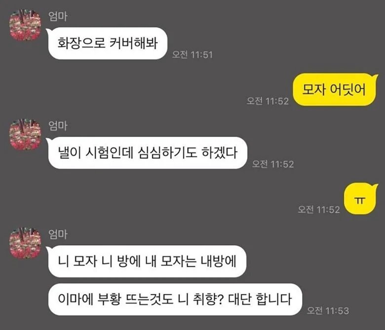 머리에 부황 뜬 딸이 한심했던 어머니 댓글 0 조회 596 2025-10-06 08:32 가자가자가자고 Lv.6 게시글 보기 총 게시글: 480개 총 댓글: 0개 가자가자가자고님의 다른 글 25.10.14 경차 오너들이 퇴근을 기다리는 이유 25.10.14 대한민국 정부 북한에 삥뜯겨.. 25.10.14 낭만 ㅈ된다는 직업류 원탑 25.10.14 사회초년생 차산지 한달만에 과태료