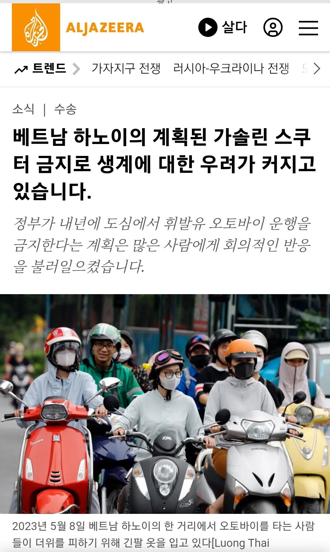 (다른 기사에서는 자국산 전기차 자동차 브랜드 빈패스트밀어주는거 아니냐는 뉘앙스도 있더라, 전기 오토바이 충전 인프라를 빈패스트가 상당수 보유하고 있다고 하면서)