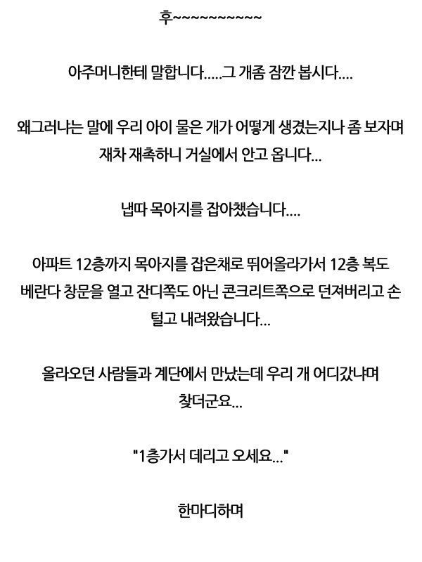 딸 물어버린 개를 12층에서 던진 썰 ㄷㄷ 댓글 0 조회 576 2025-10-08 15:09 가지마라 Lv.3 게시글 보기 총 게시글: 442개 총 댓글: 0개 가지마라님의 다른 글 25.10.11 자랑스러운 마인크래프트 한국인 기네스 기록 25.10.11 배필6 날려고 발악중인 헬기 뉴비 25.10.11 병사들에게 인기 많은 간부 25.10.11 고도비만 브이로그에는 무조건 출연한다는 음식들