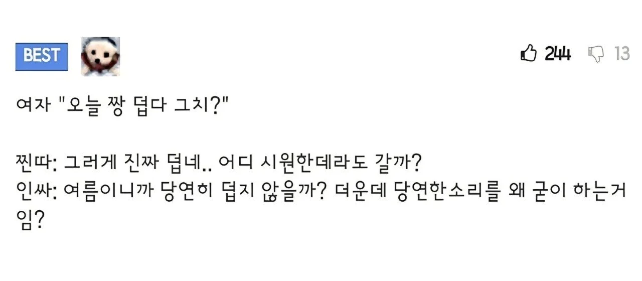 인싸와 찐따의 차이점 댓글 0 조회 548 2025-10-09 14:07 돌잔치앤가반나 Lv.11 게시글 보기 총 게시글: 449개 총 댓글: 0개 오호 돌잔치앤가반나님의 다른 글 25.10.11 자랑스러운 마인크래프트 한국인 기네스 기록 25.10.11 배필6 날려고 발악중인 헬기 뉴비 25.10.11 병사들에게 인기 많은 간부 25.10.11 고도비만 브이로그에는 무조건 출연한다는 음식들