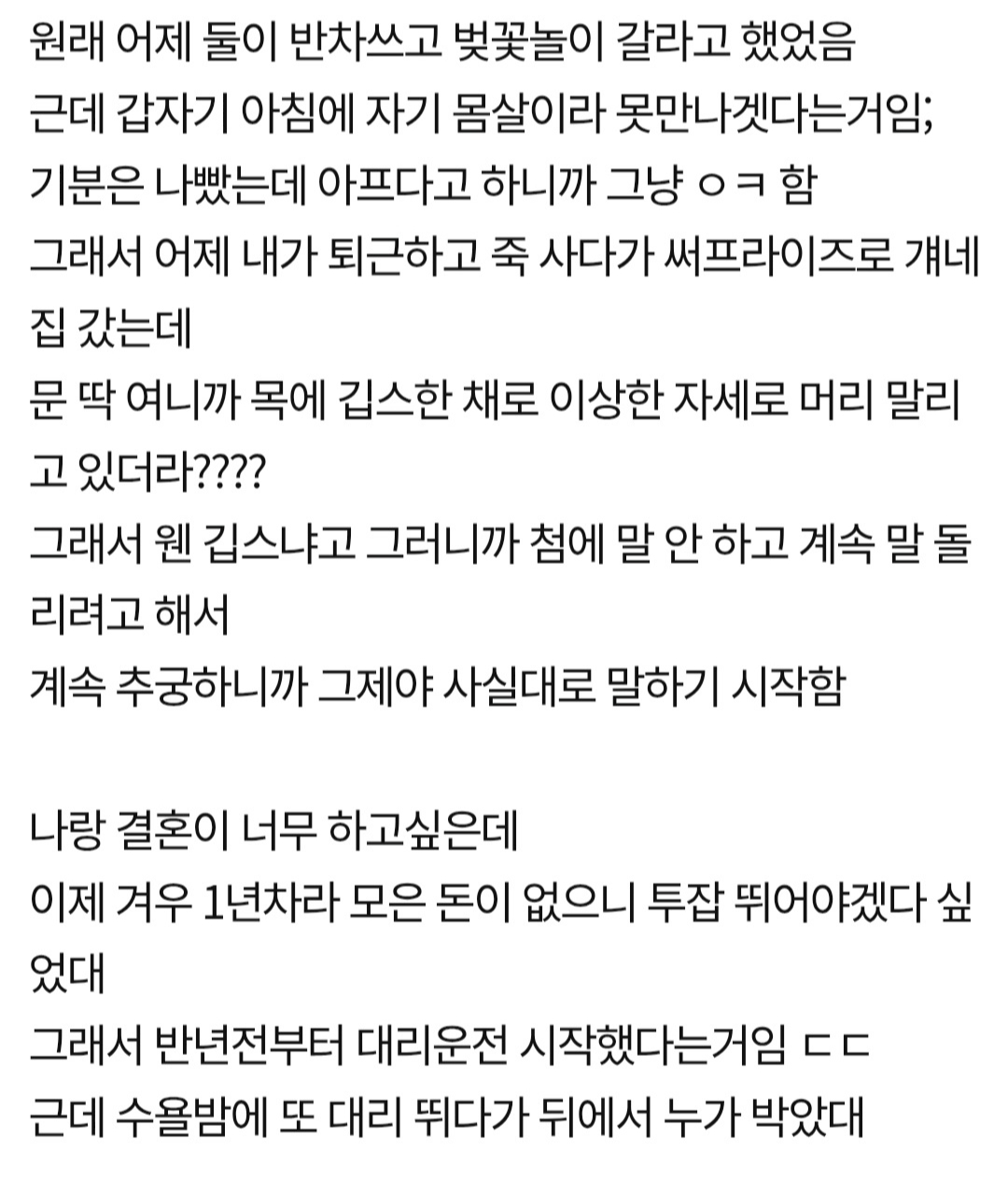 연하남친이 나랑 결혼하려고 대리운전 뛰고 있었음 댓글 0 조회 521 2025-10-09 16:21 대박노 Lv.7 게시글 보기 총 게시글: 411개 총 댓글: 0개 대박노님의 다른 글 25.10.11 자랑스러운 마인크래프트 한국인 기네스 기록 25.10.11 배필6 날려고 발악중인 헬기 뉴비 25.10.11 병사들에게 인기 많은 간부 25.10.11 고도비만 브이로그에는 무조건 출연한다는 음식들