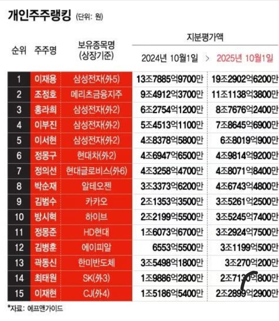 2025년 현재 대한민국 부자 순위 댓글 0 조회 527 2025-10-09 17:06 돌잔치앤가반나 Lv.11 게시글 보기 총 게시글: 449개 총 댓글: 0개 자수성가가 5명정도 되네요 돌잔치앤가반나님의 다른 글 25.10.11 자랑스러운 마인크래프트 한국인 기네스 기록 25.10.11 배필6 날려고 발악중인 헬기 뉴비 25.10.11 병사들에게 인기 많은 간부 25.10.11 고도비만 브이로그에는 무조건 출연한다는 음식들
