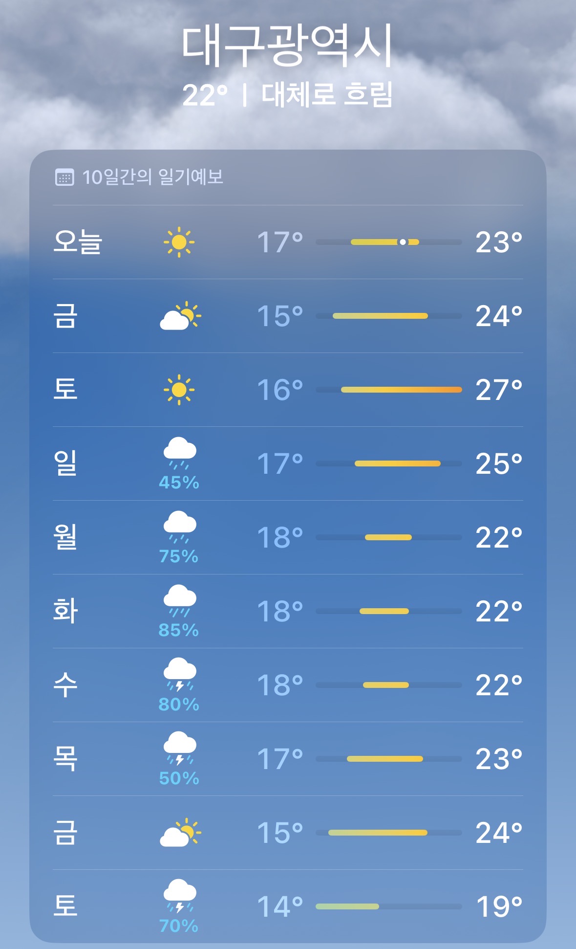 미친 것 같은 전국 대도시 10일간의 일기 예보 댓글 0 조회 570 2025-10-09 22:08 드가쥬아 Lv.13 게시글 보기 총 게시글: 450개 총 댓글: 0개 드가쥬아님의 다른 글 25.10.11 자랑스러운 마인크래프트 한국인 기네스 기록 25.10.11 배필6 날려고 발악중인 헬기 뉴비 25.10.11 병사들에게 인기 많은 간부 25.10.11 고도비만 브이로그에는 무조건 출연한다는 음식들