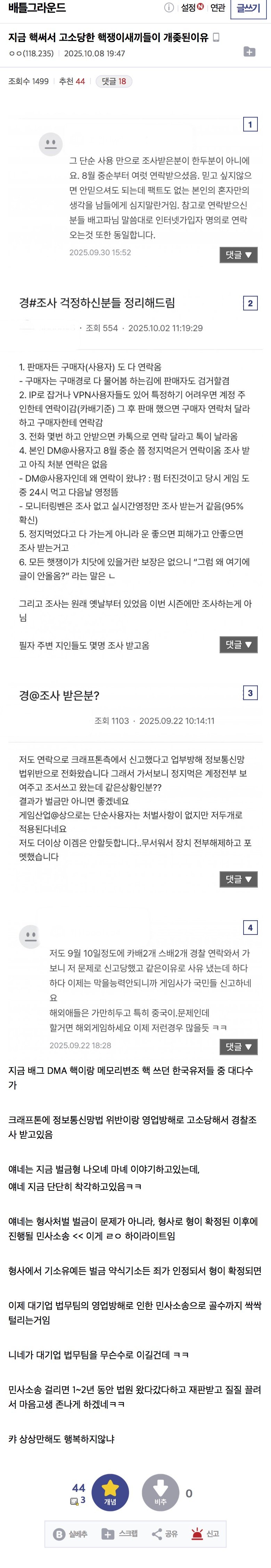 현재 ㅈ됐다는 배틀그라운드 핵쟁이들 근황 댓글 0 조회 584 2025-10-10 08:35 돌잔치앤가반나 Lv.11 게시글 보기 총 게시글: 449개 총 댓글: 0개 핵써서 배그에서 직접 고소했다고 함 정보통신법 위반, 영업방해죄 기업에서 행동으로 보인거면 진짜 작정하고 움직인듯 글이 감정적이라 내용에 신뢰는 안가긴 한데 죄가 되든 안되든 몇개월 고생하는건 확정으로 보임 돌잔치앤가반나님의 다른 글 25.10.11 자랑스러운 마인크래프트 한국인 기네스 기록 25.10.11 배필6 날려고 발악중인 헬기 뉴비 25.10.11 병사들에게 인기 많은 간부 25.10.11 고도비만 브이로그에는 무조건 출연한다는 음식들