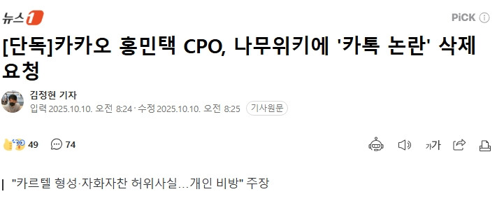 카카오 CPO 진짜 개짜치는 근황 댓글 0 조회 540 2025-10-10 10:54 네이마르로 Lv.4 게시글 보기 총 게시글: 454개 총 댓글: 0개 [단독]카카오 홍민택 CPO, 나무위키에 '카톡 논란' 삭제 요청 - 뉴스1 네이마르로님의 다른 글 25.10.11 자랑스러운 마인크래프트 한국인 기네스 기록 25.10.11 배필6 날려고 발악중인 헬기 뉴비 25.10.11 병사들에게 인기 많은 간부 25.10.11 고도비만 브이로그에는 무조건 출연한다는 음식들