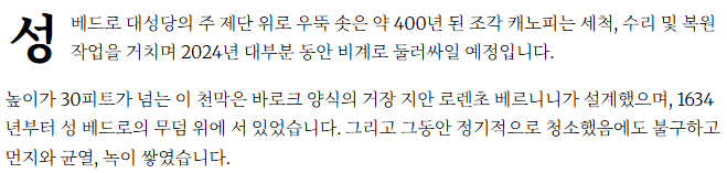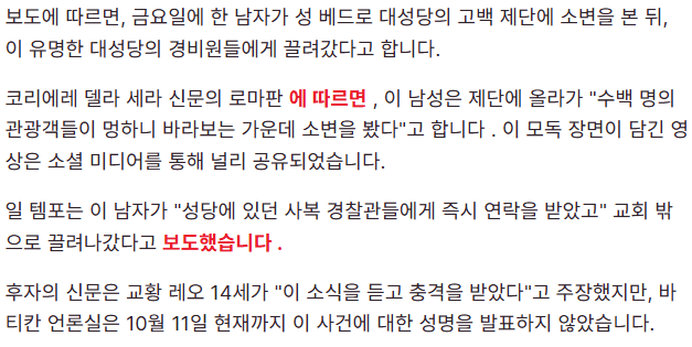 바티칸 성 베드로 대성당 제단에 소변 테러