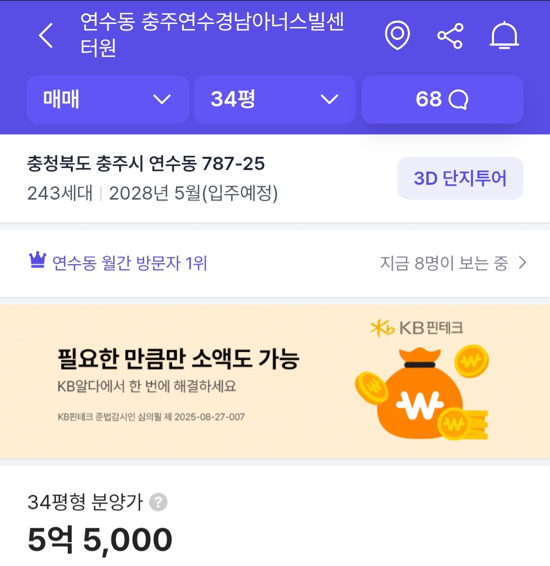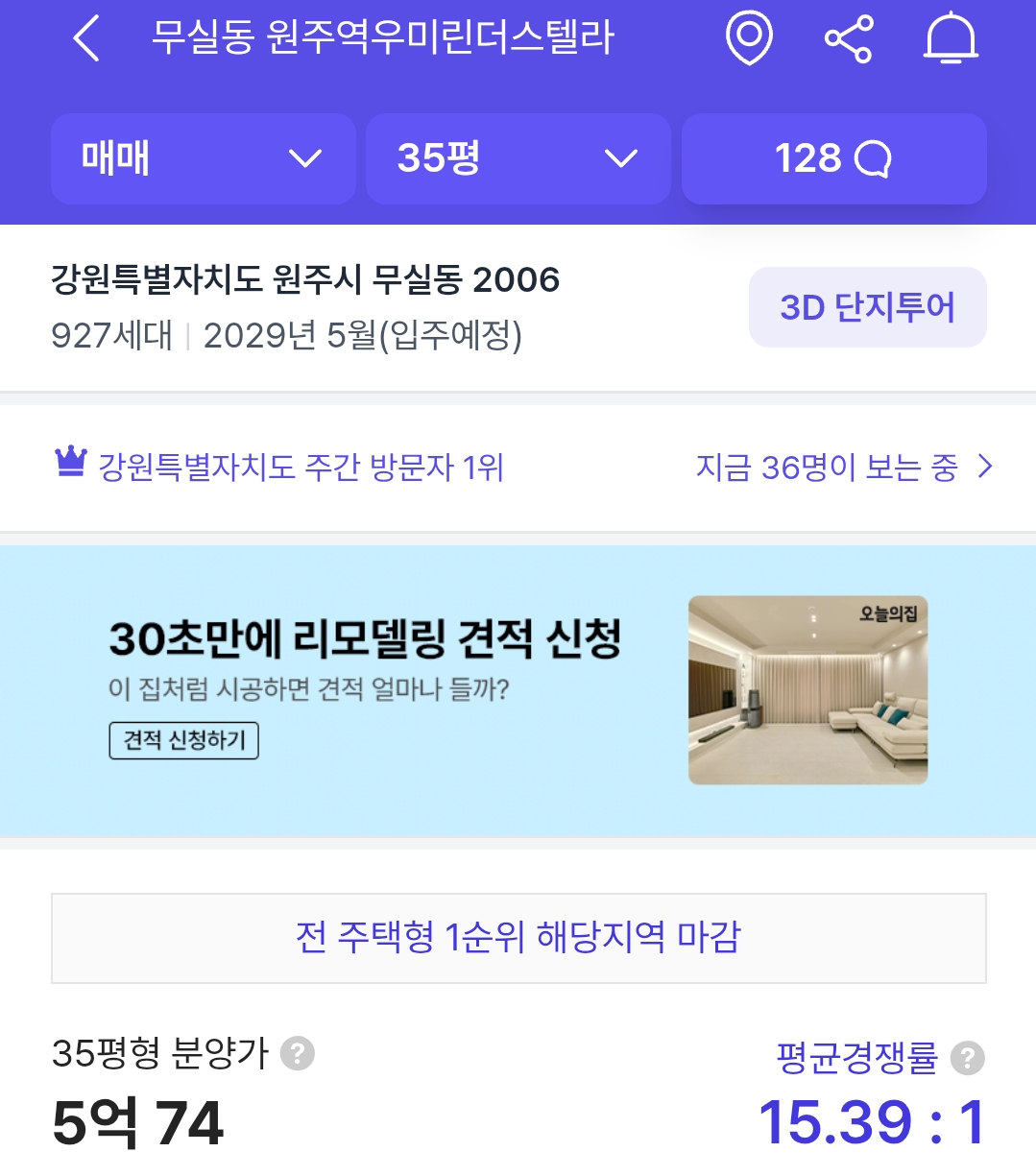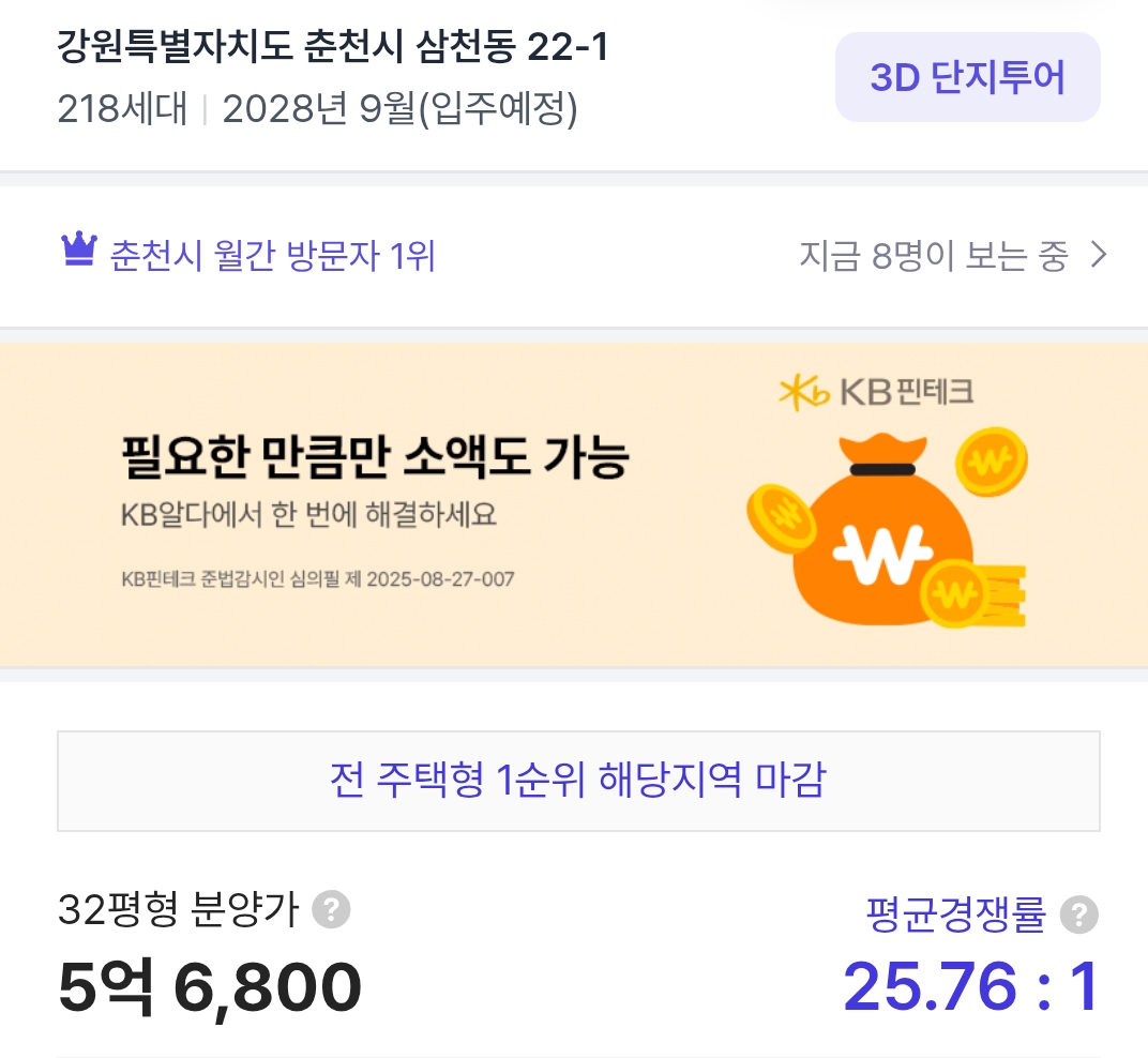 춘천 5억 7천정도 (32평이라고 적혀있지만 전용면적은 84 동일)