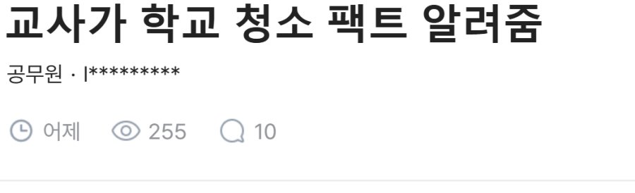현직 교사가 알려주는 요즘 학교 청소 실태 댓글 0 조회 569 2025-10-14 11:25 더한마음 Lv.8 게시글 보기 총 게시글: 501개 총 댓글: 0개 더한마음님의 다른 글 25.10.14 삼성 갤럭시 스마트폰 3분기도 점유율 떡상 25.10.14 모델Y 주니퍼 미친 판매량이네요 ㄷㄷ 25.10.14 얼마전 중국에서 일어난 레전드 교통사고 장면 25.10.14 내일 오랜만에 한국에 돌아오는 인앤아웃