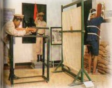 반동을 없애기 위해 총은 단단하게 고정되어 있고
